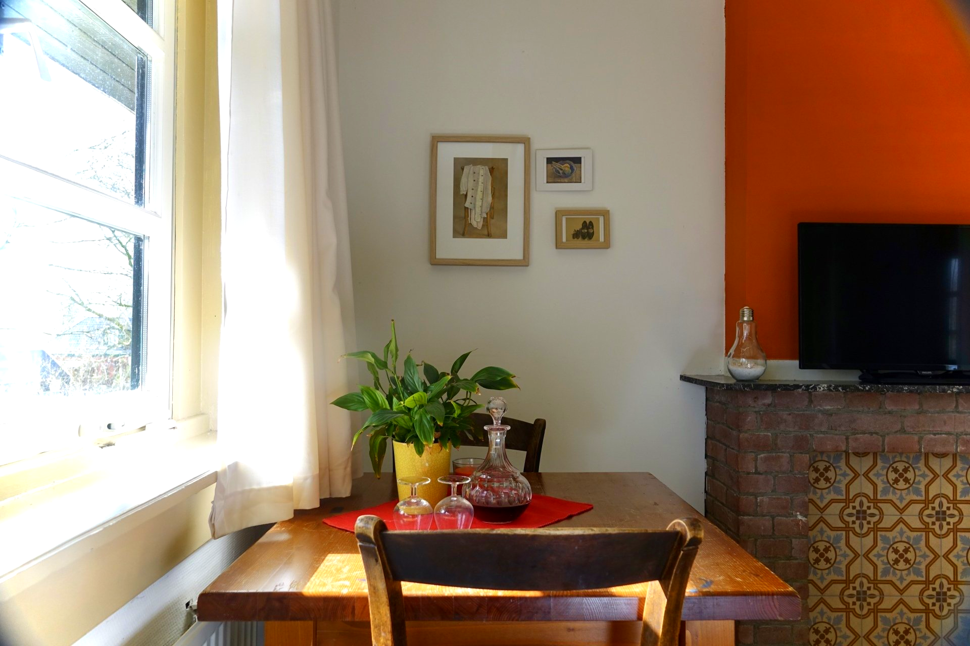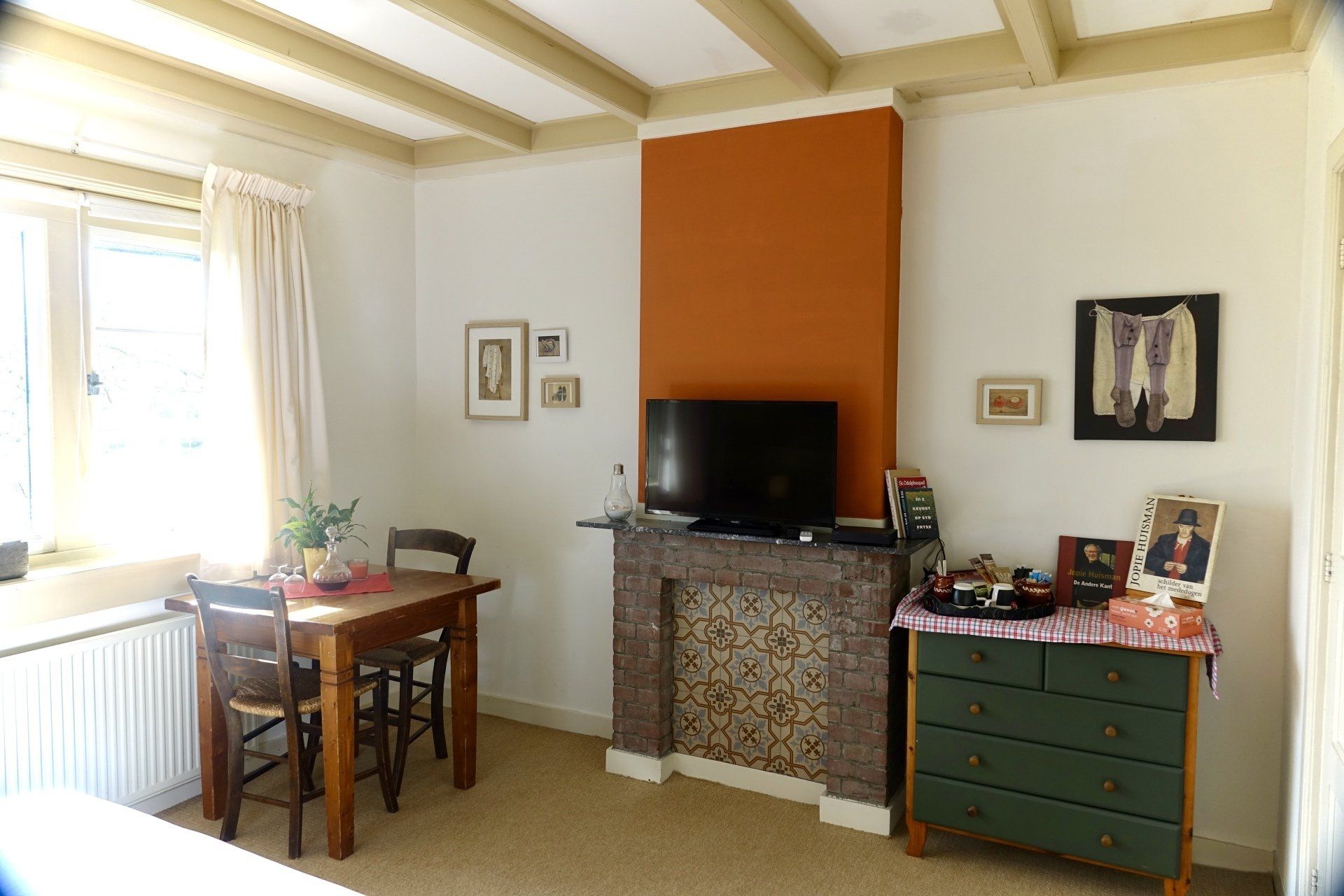 De Jopie Huisman kamer is een gezellige, kleurrijke kamer waarin het meubilair verwijst naar het leven en werk van deze bekende kunstschilder uit Workum.